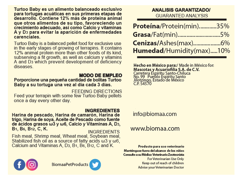 Turtoo Baby is a balanced food specially formulated to meet the requirements of terrapins in their early stages of development.